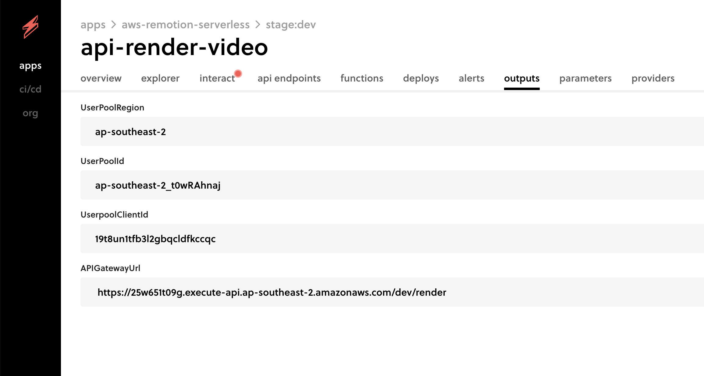 render_progress: api-render-video-dev-render_progress (44 MB)The serverless application is configured to be associated in changeme organization dashboard from serverless dashboard.